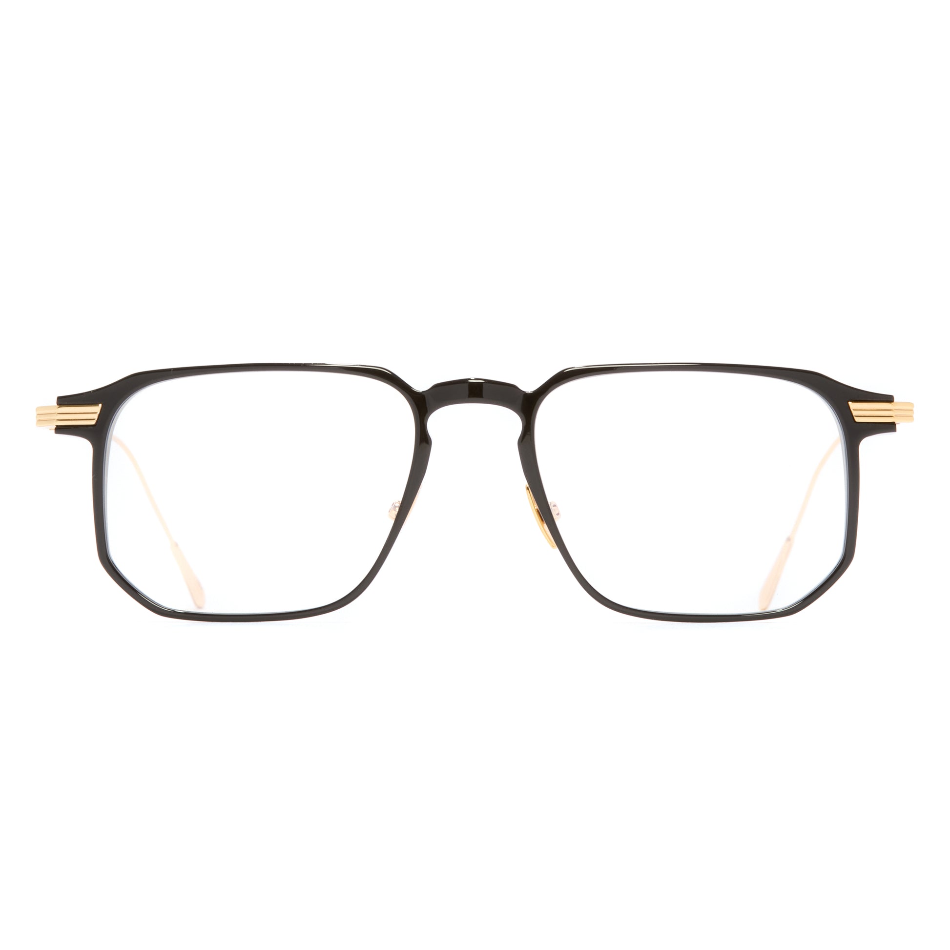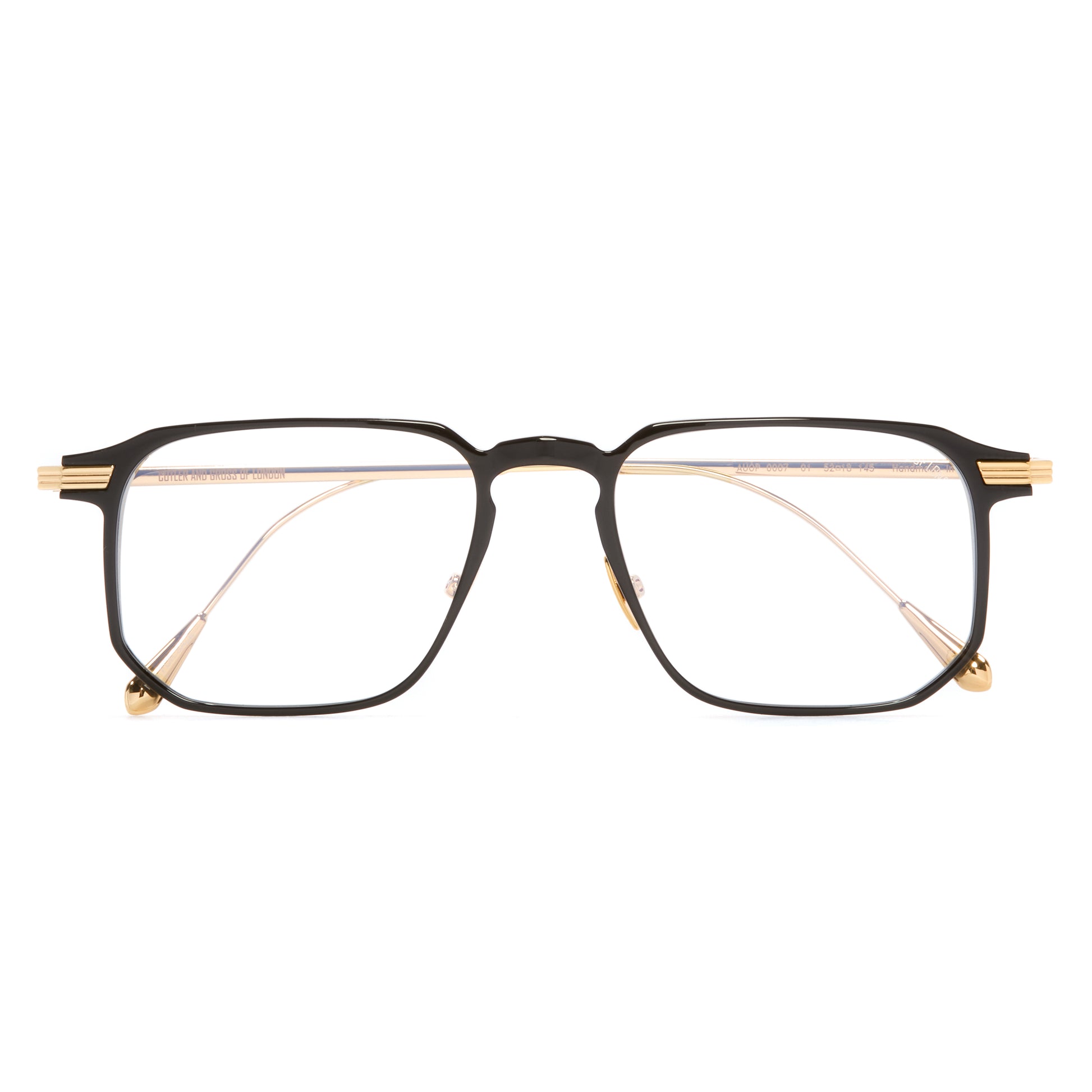 Cutler and Gross's signature Oyster pin has been translated into grooved lugs on this square frame. It is handcrafted with a slim acetate frontal and balanced with ultra-light precious metal temples