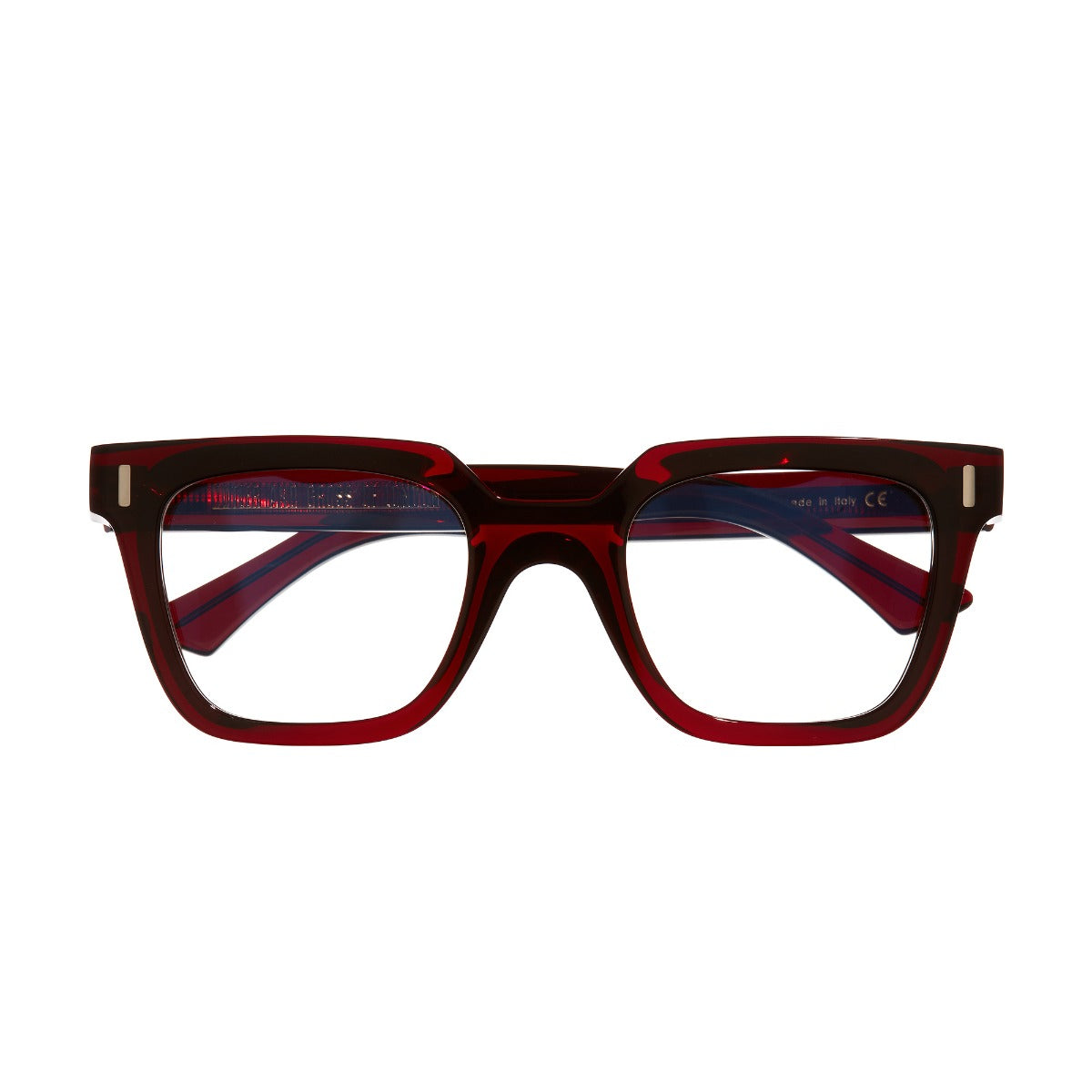 A unique 9mm laminated acetate large square design optical frame with interior 'televisioni' milling to reduce the overall weight with a sculptural bridge for superior comfort. Flat bridge a new vertical frontal pin and pin-less temples.