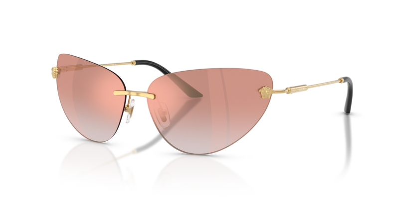 Versace VE2281 redefines modern glamour with a cat-eye silhouette and rimless design, created for women who appreciate quiet luxury in every detail. As designer eyewear, this piece embodies Versace's bold elegance, where luxury sunglasses aesthetics meet a refined, confident silhouette. The result is a frame that speaks of craftsmanship, from the angled crown of the bridge to the delicate curvature of the temple tips. It pairs versatility with statement-making glamour, making it the perfect companion for both city streets and after-dark events.